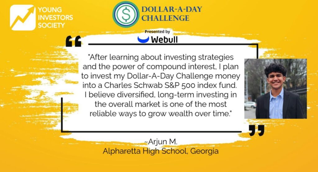 See how our Young Investors Society Dollar-A-Day Challenge, presented by Webull Financial, winners plan to invest their Dollar-A-Day scholarship matches and start building their financial futures.
